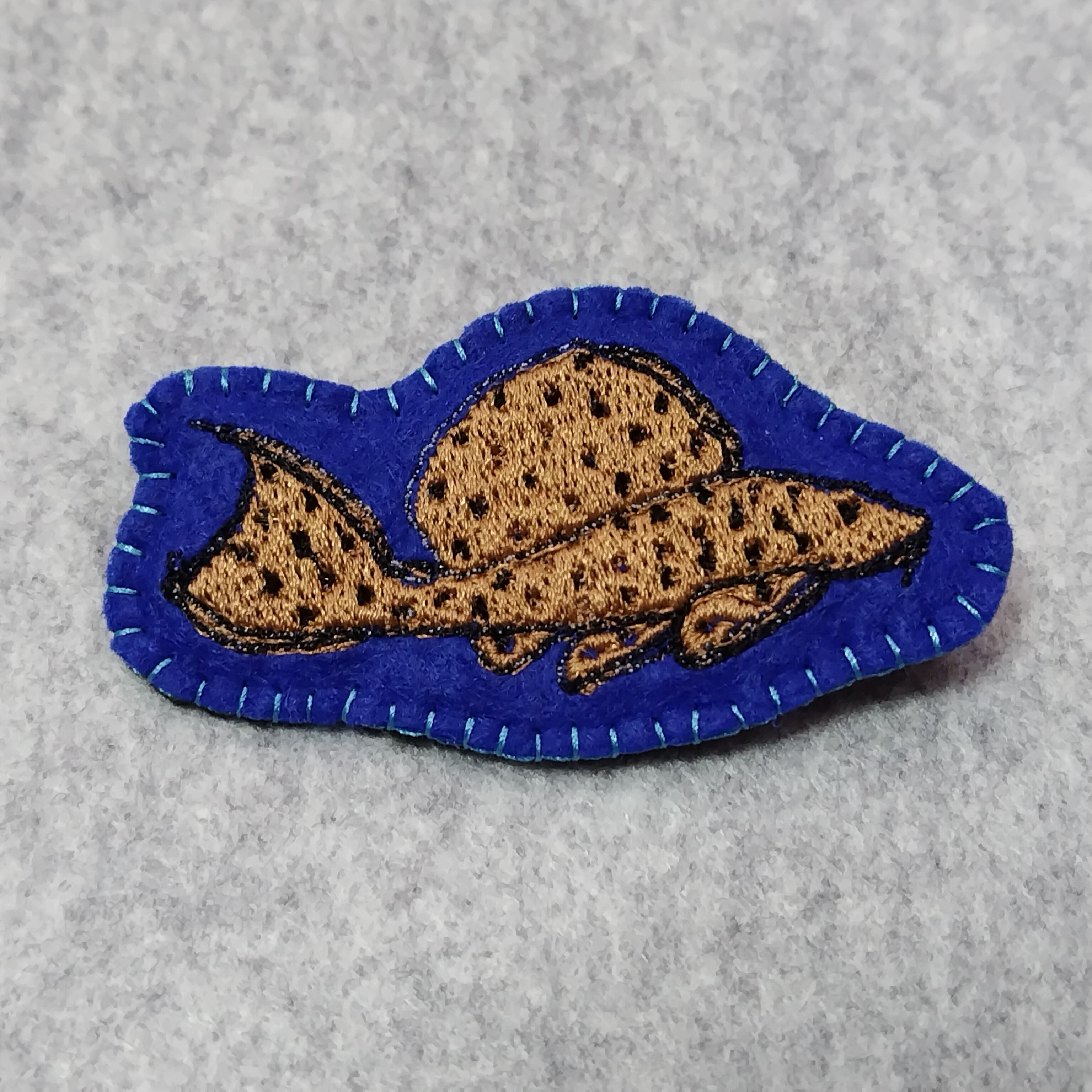 プレコをデザインした刺繡ブローチです。